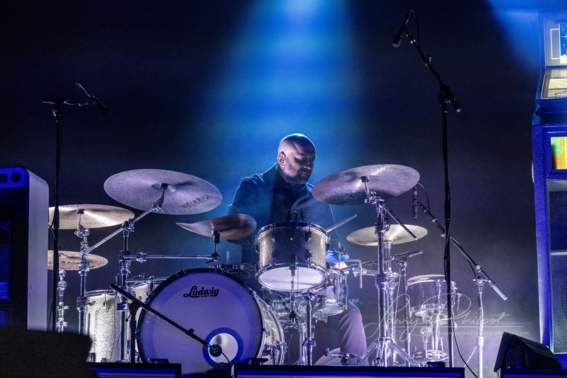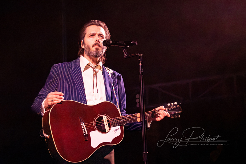 Under the Arizona evening sky at Tempe Beach Park, Lord Huron created a world all their own during their 7:55 p.m. set on the Right Field Stage. With Ben Schneider’s warm, storytelling vocals floating over reverb-drenched guitars and atmospheric percussion, the band’s sound feels like the soundtrack to an epic road trip through misty forests and forgotten towns — a rare quality that sets them apart in today’s music scene, where their wistful indie folk-rock blend feels both intimate and vast. The stage setup was compelling, and the well dressed performers were well received.