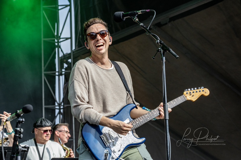 Late afternoon on July 19, 2025, and Harriet Island is a sea of swaying bodies under the Minnesota sun, the Mississippi catching every glint like it’s dancing along. The Minnesota Yacht Club Festival’s second day has built to this 5:30 p.m. slot, and as Cory Wong and his nine-piece powerhouse take the River’s Edge stage, the air crackles with promise. I loved this entire set—they’re the ultimate dance band, horns blazing, rhythms locking in like a well-oiled machine, turning the park into one big, funky floor. Cory, the Minneapolis maestro with his Strat slung low, grins wide as he digs into the first riff, and just like that, feet are moving, smiles spreading, the crowd hooked from note one.