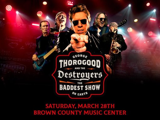 Nashville, Ind. (November 3, 2025) – For more than five decades, over 8,000 live shows and more than 15 million albums sold, George Thorogood & The Destroyers have been “The All-American rock & roll party band” (Goldmine Magazine). And for their 53rd year of “playing rock & roll hot enough to melt the polar icecaps and flood the world’s major population centers” (Rolling Stone), the 2026 continuation of The Baddest Show On Earth Tour is a stage-shaking, roof-raising, guitar-snarling blast, making a stop at the Brown County Music Center in Nashville, Ind., on Saturday, March 28, 2026, with special guest Canyon Lights.