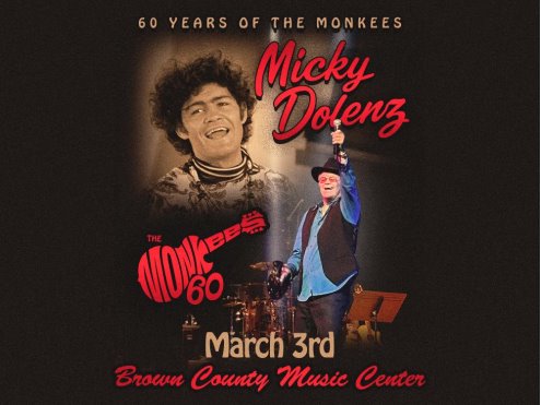 Nashville, Ind. (November 11, 2025) – Micky Dolenz, best known as a vocalist and drummer of the 1960’s pop legends The Monkees, will celebrate 60 Years of The Monkees live at the Brown County Music Center in Nashville, Ind., on Tuesday, March 3, 2026.