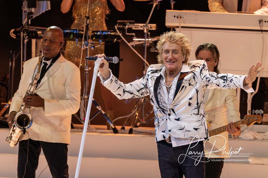 “Da Ya Think I’m Sexy” got hips moving. Rod strutted. “Stay with Me” recalled Faces days. “Some Guys Have All the Luck” wrapped the main set. Cheers demanded more.