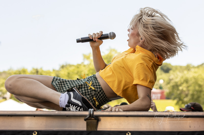 Imagine the sun dipping just low enough to cast a golden haze over Harriet Island Regional Park on that sweltering Sunday afternoon, July 20, 2025. The Minnesota Yacht Club Festival is in full swing, the air thick with the scent of sunscreen, river breeze, and that unmistakable thrill of a crowd syncing up to the beat. It’s 1:20 p.m., right on the dot, and the stage erupts like a storm cloud bursting—Winona Fighter bursts onto the scene, all fire and fury. Frontwoman Coco Kinnon charges out screaming, her voice a raw howl that slices through the chatter, backed by a wall of punk distortion that hits like a freight train. She’s everywhere at once, dramatic and unapologetic, sprinting across the stage and down the runway, ponytail whipping like a battle flag, sweat already gleaming under the lights. It’s like watching a fighter step into the ring, gloves up, ready to throw punches at the universe itself.